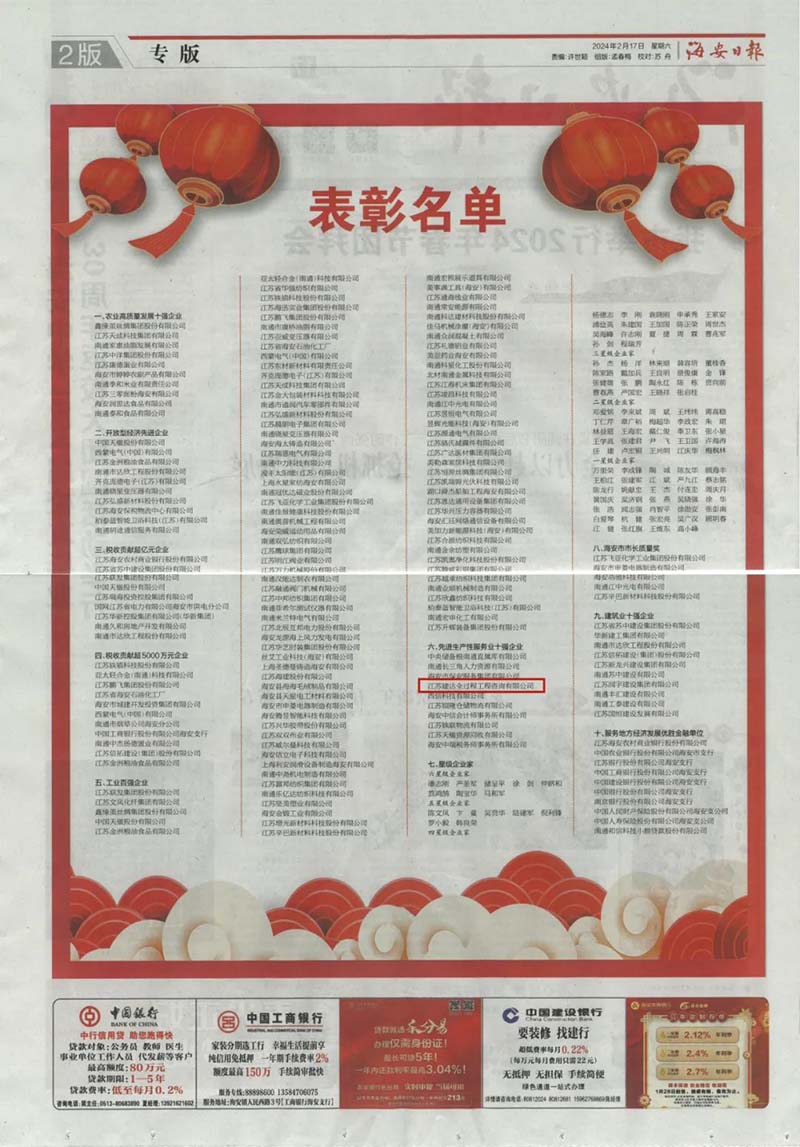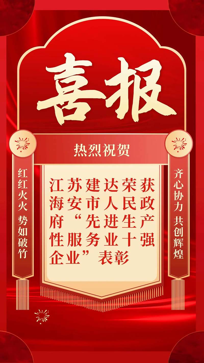 喜报!江苏建达荣获海安市人民政府2023年度“先进生产性服务业十强企业”表彰