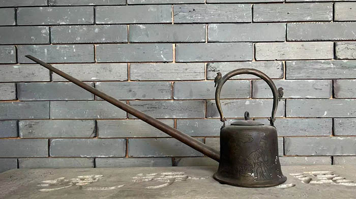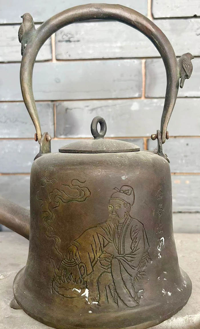 壶之材质繁多,金、银、锡、铜、玉、紫砂、瓷各具风韵。市井坊间,尤以老锡壶、铜壶、紫砂壶与瓷壶最为常见。我收藏了一把老铜长嘴壶,此乃旧时茶摊叫卖所用,壶嘴修长,铜色温润,依稀可见当年市井烟火气。