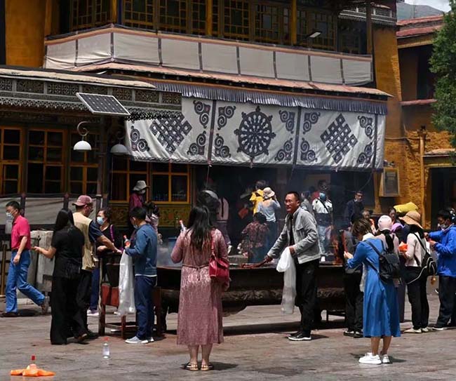 黄财神喜酒,去拜黄财神要带酒去。西藏有一个扎基寺,每天去朝拜的人很多,早上七点开门,六点半就有人在寺庙门口排队了。寺门口闻到的味道不是藏香,而是酒香。