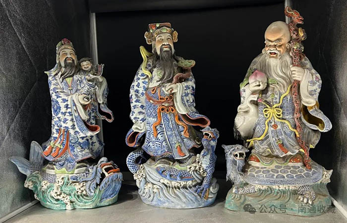 这个做师傅的铲地皮人,确实不仅会讲故事,而且还会做套子。一次他邀请我去铲地皮,言下之意,你不懂铲地皮,就不能真正学会玩古玩。在他的眼中,拿行里(古董商人)货的人,不是真正的古玩家。他带我来到一个水乡古镇,古镇很繁华,街面上有理发的、做豆腐的、爆米花的、炸油果子的。我们七拐八拐到了一户人家,走进厨房,里面有一个老人在煮饭。老人也没空理我们,铲地皮的东看看,西看看,最后寻到三只福禄寿三仙瓷器。这瓷器说老不老,说新不新,大概就是民国期的物件。但是在他的嘴里夸的是天花乱坠,说这件如何如何的好,后来我怀疑是他埋的坑。