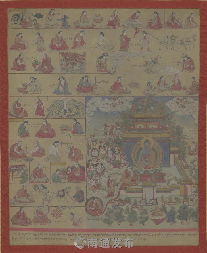 近20年来,崔世荣先后收藏了200多幅唐卡,涉及彩绘唐卡、刺绣唐卡、堆绣唐卡、缂丝唐卡、珍珠唐卡、玛瑙唐卡、印刷唐卡、牛皮唐卡等多种不同制作工艺或材质。“像刺绣唐卡又分为苏绣、藏绣、堆绣、盘金绣、发绣等不同刺绣工艺。其中,历史上发绣的发源地就是我们里下河一带,是以青丝代线入画的一种非遗绝技。”他强调,一幅好的唐卡作品往往需要用到三五十种色彩,时间的流逝亦能给唐卡的画面本身带来了一种难以复刻的独特韵味与历史沉淀,进而带给观赏者一种庄重、肃穆、神秘之感。